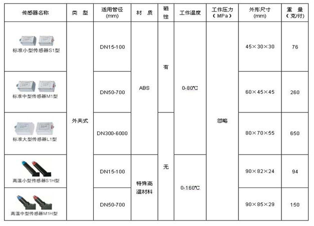 可选配传感器 | S1 | 标准S1型传感器(外缚式) | |||||||