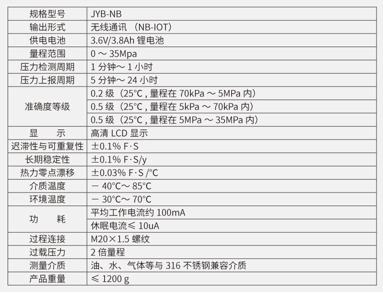 为了最大限度的降低系统功耗,本产品出厂时,数据上报周期默认是1小时通讯一次,为了尽可能的提高检测的密度本产品具有了压力报警阈值设置的功能,默认每5分钟进行一次压力值读取,当超过报警限值后,会马上上报数据,同时会对变化量进行检测,将变化量超过总量程的10%(默认)后,也会即时上报数据。
